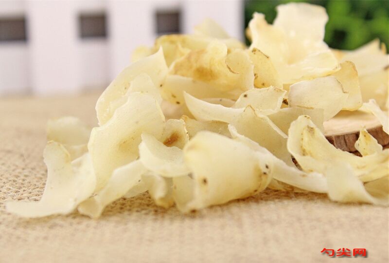 乙級:色澤鮮明,呈黃白象牙色。全干,沾凈。片較大,肉厚,片長4~5厘米。無霉變,無蟲傷,無麻色及灰碎等。