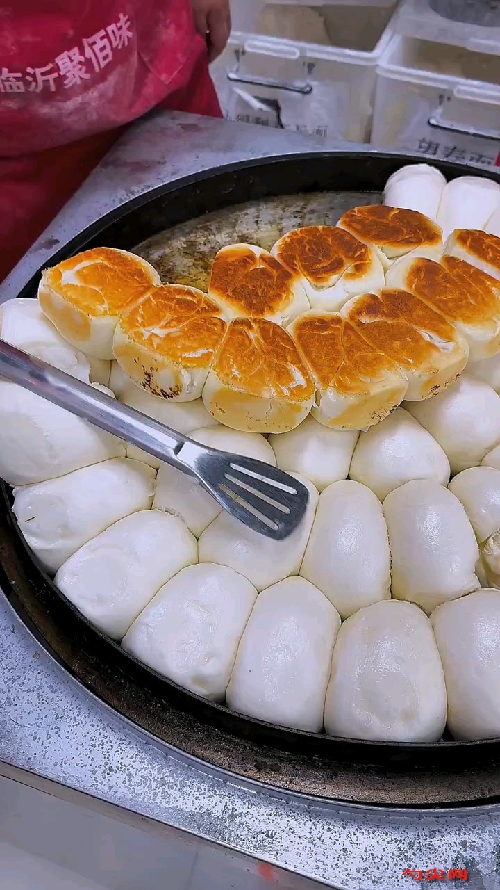 工藝:稱取500克面粉,將8克泡多源A型與面粉干拌均勻,稱取275克溫水,把5克酵母和10克白糖放入溫水中攪拌融化,將溶解好的酵母白糖水倒入混合好的面粉里,開始和面,把面揉成光滑面團(tuán),蓋上保鮮膜醒十分鐘,醒好后將面團(tuán)揉成長條兒,分成100克的面劑,把每個面劑揉成饅頭形,將揉好的饅頭放入醒發(fā)箱,設(shè)置溫度38度濕度75度醒發(fā)20分鐘,發(fā)至一倍大,鍋中刷適量食用油,開火將鍋燒熱至180度左右,擺入發(fā)好的饅頭,煎制底部微黃,將面粉與水按合適比例混合制成面粉水,沿著鍋邊倒入面粉水,蓋上一個蓋子,水開后在鍋蓋邊緣淋入少許食用油,繼續(xù)煎到水分收干即可。