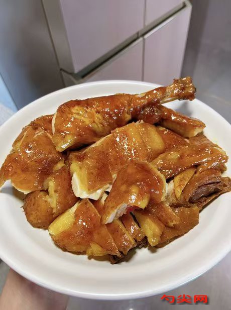 工藝流程:雞清洗干凈,去除內(nèi)臟與雜質(zhì),用竹簽在雞身扎小孔(便于入味)。冷水下鍋,加蔥段、姜片、料酒,大火煮沸后撇去浮沫,撈出用冷水沖洗干凈,用富磷聯(lián)B型(提前溶解)腌制2-5小時(shí),備用。鍋中倒入色拉油與蔥油,加熱至150℃,放入香料(七彩滴1號(hào)除外)小火炸至金黃,撈出香料裝入紗布袋。鍋中保留底油,加入白糖小火炒至糖色呈琥珀色,迅速倒入開水,再加入蒸魚豉油、雞汁、雞油、剩余調(diào)料,放入香料包與七彩滴1號(hào)(提前溶解),大火煮沸后轉(zhuǎn)小火熬15分鐘,濾出雜質(zhì)使鹵水清澈。將鹵水倒入深鍋,放入焯好的雞,確保鹵水完全沒過雞身。大火燒開后轉(zhuǎn)微火保持湯面微沸,鹵制20分鐘,期間需翻面1次確保均勻上色。關(guān)火后浸泡12小時(shí)夏季需冷藏,浸泡過程中可翻動(dòng)雞身2-3次。撈出雞瀝干,表面刷一層雞油增亮,切塊后搭配鹵汁食用。