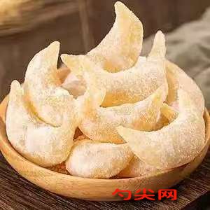 工藝:將250克普通面粉與5克泡多源G型、1克美久亭Q型、2克鹽攪拌均勻,加入攪散的50克雞蛋與100克清水?dāng)嚢柚翢o(wú)干面粉,揉成稍偏硬面團(tuán)后覆蓋保鮮膜松弛40分鐘,鍋中加入100克清水、200克白糖、200克麥芽糖,開小火熬至沸騰后繼續(xù)熬煮五分鐘,期間適當(dāng)攪動(dòng)防止糊鍋,待水分減少、氣泡變密后關(guān)火,晾至常溫加入100克麥芽糖漿攪拌均勻備用,松弛好的面團(tuán)在案板上搓成長(zhǎng)條,分成四個(gè)大小均勻的劑子,案板撒干面粉防沾,將劑子按扁搟成長(zhǎng)方形大薄片,厚度如餃子皮,取一張薄片放一旁備用,另一張撒適量白糖形成分層,將未撒糖薄片覆蓋其上,整理邊緣整齊后用搟面杖輕壓使其貼合,用圓蓋從一端壓出圓形,從圓形邊緣開始只壓一半形成月牙狀,全部壓完成型后醒發(fā)10分鐘,鍋中油燒至150度,放入面劑不停翻動(dòng)使其受熱均勻,待面劑鼓起后繼續(xù)炸至金黃出鍋,立刻放入熬好的糖液中翻拌均勻,浸泡30分鐘使糖液充分滲透,取出后外層沾滿白糖防止糖液流出。