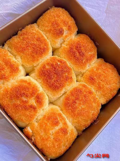 工藝:將1.6克佳多美Q型與330克普通面粉干拌均勻,加入5克酵母、40克白糖、4克鹽、打入1顆雞蛋、倒入160克牛奶、加入用涼水溶解好的1克美久亭Q型,用筷子攪拌成絮狀后倒入和面機揉至光滑,接著加入35克黃油繼續揉出手套膜,把揉好的面團取出分成50克一個的面團擺進烤盤,放入醒發箱醒發30分鐘,另拿一個碗打入1顆雞蛋、加入40克油、50克白糖,放入適量椰蓉攪拌成椰蓉醬,待面包發至兩倍大時擠上椰蓉醬,提前預熱烤箱至上下火180度,放入烤盤烤20分鐘即可出爐。