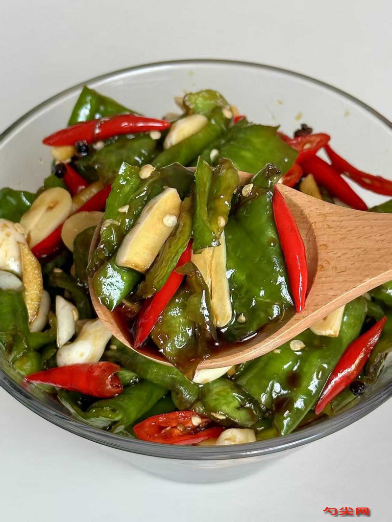 注意事項:青椒要選新鮮、無病蟲害、質地脆嫩的,洗凈后一定要晾干表面水分,防止腌制過程中變質。沸水沖燙青椒的時間要短,以免青椒變軟,影響口感。料水要完全涼透后再倒入壇中,避免青椒受熱變質。花生油要燒熱后放涼再倒入壇中,以去除生油味,增加風味。