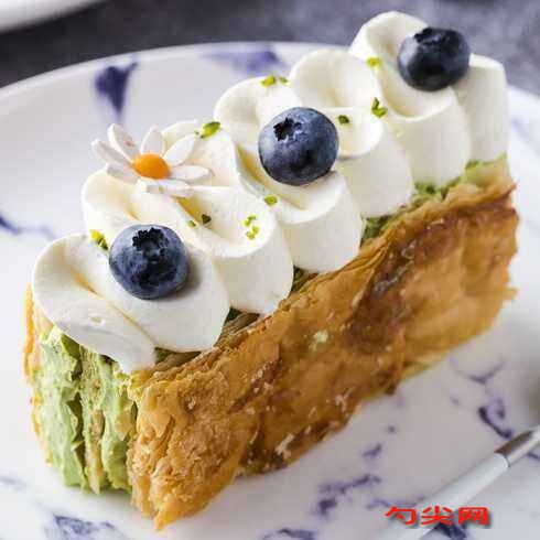 配方:強筋糕點粉1.4kg,泡多源G10克,精鹽15g,奶油150g,水800g,雞蛋175g,奶油1.35kg,香蘭素1g,奶油1kg,白蘭地酒10g,香蘭素1g,牛奶黃醬1kg,撲糕點50g,粘面白砂糖250g,刷面雞蛋125g。