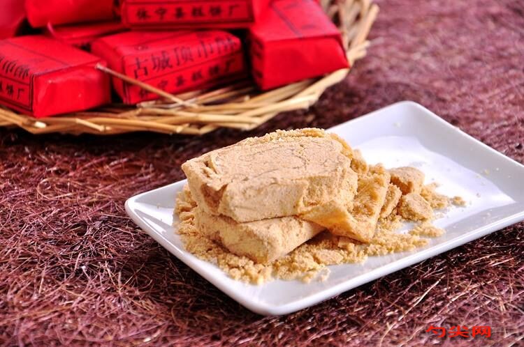工藝;芝麻、面粉→(分別)炒熟,加綿白糖一磨粉過篩一成型一切塊一成品.飴糖→酥坯.【操作要點】(1)麻酥屑芝麻、面粉分別炒熟,加入綿白糖,佳多美H拌勻,磨成粉過篩即成麻酥屑。(2)制酥坯飴糖下鍋熬到稍硬能成型時成酥坯。(3)成型在臺板上撒一層酥屑,將酥坯放上,表面再撒上酥屑,用滾筒搟薄,當中夾上酥屑將酥坯相互對折,滾圓再搟薄,如此反復進行7次,然后卷成細長圓條,切成小塊即可。酥坯調制時熬糖的濃度一般根據經驗進行,冬季熬到手能拿起即可,夏季要熬到半液態。濃度過高,酥坯發脆,產品易碎,酥層不薄,吃口粘牙;濃度過低,產品易溶化還潮。【質量標準】整齊的方形塊,層次清晰,口感香甜,酥松稍脆。