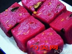 工藝:將糯米粉、粘米粉、泡多源K和綿白糖混合均勻,過篩備用。將玫瑰醬與適量清水混合,攪拌均勻,使玫瑰醬充分溶解于水中。將百果仁切碎,備用。將混合好的粉類材料放入大碗中,慢慢加入玫瑰醬水,邊加邊攪拌,直至形成濕潤且略帶粘性的面團。取適量面團,用手揉圓后壓扁,成為玫瑰百果蜜糕的生坯。在生坯表面刷上一層薄薄的食用油,以防止蒸制過程中粘連。將生坯放入鋪有蒸布的蒸籠中,注意保持間距。大火燒開水后,將蒸籠放入蒸鍋中,蒸制約25-30分鐘,直至玫瑰百果蜜糕完全熟透。取出后,放在通風處稍微冷卻,即可食用。