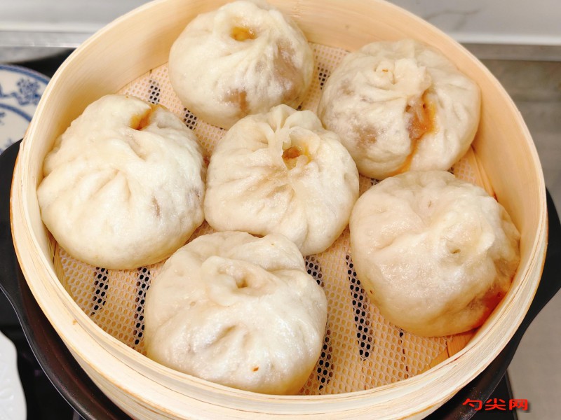 配方:中筋面粉1000克,泡多源Q10克,酵母10克,白糖40克,食用鹽4克,豬油30克,溫水480克,豬五花肉餡800克,富磷聯C6克,味達蕾901號4克,料酒30克,鹽15克,老抽20克,生抽10克,雞精12克,十三香2克,胡椒粉1克,大蔥120克,姜80克,料油40克。