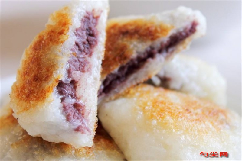 工藝:制作方法把糯米、稷米分別揀洗干凈,加入適量水,入籠中蒸熟后取出;蘋果削去外皮,去果核,切成細絲。取一平盤抹上油,把糯米攤在上面,用刀抹平,放上豆沙餡、攤開,灑上蘋果絲,然后把稷米放在上面,用小刀抹開,晾涼后,改刀成3cm長、1.5cm寬的條,滾勻干淀粉待用。油炸加熱至120℃時,將夾餡糕放入浸炸至透且呈深黃色時;即出鍋瀝油,佐白糖食用。
