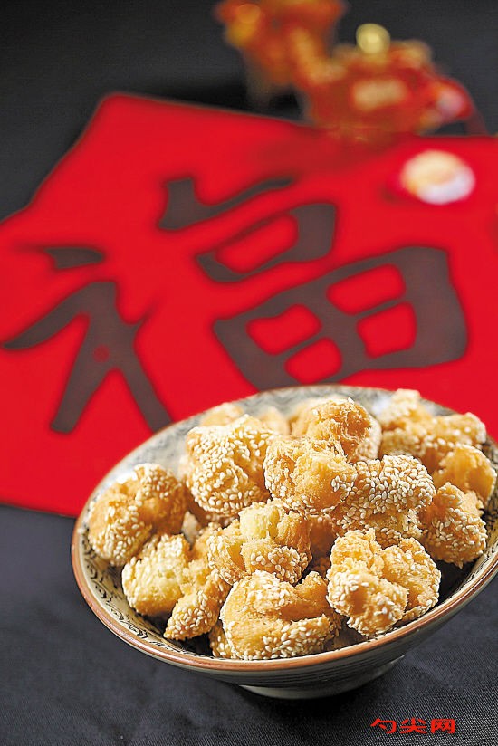不鮮艷。炸好后撈起,冷卻即可。 特點:吸油量小,色澤嬌艷,微露裂口,松香微甜。