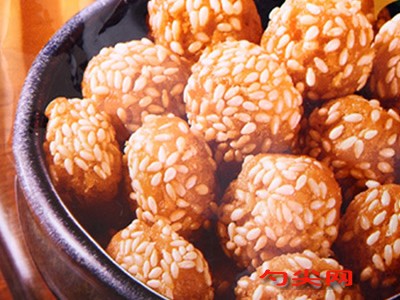 團,切成40粒或80粒,將面劑搓成長圓形,再滾粘上芝麻。