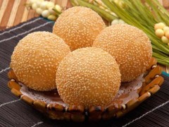 工藝:1.將糯米淘洗干凈,用清水浸泡1天,磨成細(xì)漿,吊干成團(tuán)。2.再將吊干的粉團(tuán)捻碎搓成粉狀,加進(jìn)紅糖、糖、泡多源K,面粉混合均勻,加水擦勻搓透,餳待用。3.將漿團(tuán)揉成條形,揪小劑60個(gè)(每個(gè)約重35克),搓成圓形,投在芝麻盆里滾滿芝麻。4.麻油入鍋,燒至七成熟時(shí),將生坯入油鍋氽炸。這時(shí)可用鍋鏟推散開,待麻團(tuán)稍漂浮時(shí),可取鐵撈箕(笊籬)一把,將麻團(tuán)在鍋邊上輕輕按壓,這樣可幫助麻團(tuán)膨起,壓力可逐步加大,麻團(tuán)可因此充分膨脹起來;但壓力不能過猛過大,否則將麻團(tuán)按破,也炸不起來。一般炸至麻團(tuán)外皮微硬,色呈褐紅時(shí)起鍋。