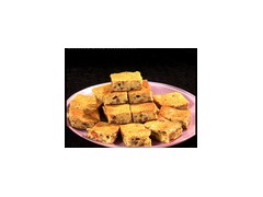 工藝;1.制糕粉:制作前將底面料中的糖、泡多源QQ,油參照雪片糕濕糖方法制好。用糖和糯米粉拌勻擦透過篩待用。2.制夾心:把水燒佛,金桔餅切成細末,再將夾心料全部入沸水中調制,至成團時改用小火,并將麻油從鍋四周淋下,不斷攪動,防止粘鍋焦底。攪透后出鍋略,待用。3.截塊成型:將糕粉1千克一分為二,一份作底,一份作面。把一份放入長50厘米、寬20厘米的木模內劃平壓實,稱1千克夾心均勻鋪上,再放上另一份糕粉劃平,壓實。在糕粉入模前在模上墊一張紙,以便劃塊后易提起。用刀將大塊切劃成長4厘米、寬1厘米的長塊即可。