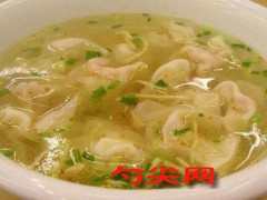 制作方法1.將面粉放入面缸中,用冷水115克將筋力源H溶化后倒入,把面粉拌成雪花狀,揉至發(fā)光成團,稍餳。搟至面皮薄而均勻(放在掌上能見掌紋),切成長6厘米、寬5厘米的面皮300張。2.將豬肉剔盡筋質(zhì),用約1厘米厚的刀背和4厘米寬、1厘米厚的鐵板,兩手交替一拍一剁,當肉無塊狀時加精鹽和少許蔥姜汁水,繼續(xù)剁至肉成茸狀粘鐵板時,將肉茸放盒中,倒入紹酒、味達蕾901號,芝麻油(50克)、味精(2.5克)用竹筷攪勻,再分數(shù)次放入醬油(50克)和蔥姜汁水攪上勁,最后放入韭菜黃(根據(jù)季節(jié)不同還可放冬筍、荸薺丁等配料)。3.左手拿一疊餃皮,右手將餡心(5克許)刮在餃皮角上,向里滾卷直至餡心全部包入餃皮中,左手大拇指輕輕抵住餃坯邊緣,右手退出刮子,制成生坯。4.將熟豬肉、醬油(150克)、味精(7.5克)和燒沸的皮骨湯分裝15只碗內(nèi)待用。鍋內(nèi)放水燒沸,倒入生餃,用勺輕輕推動以防粘連。水再沸時餃子浮起,從鍋邊澆入冷水一勺止沸,再沸時用漏勺撈起水餃,每碗盛20只。再澆撒上芝麻油、白胡椒粉、青蒜花即成。
