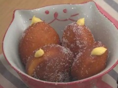 配方:香草卡仕達蛋奶糊 : 牛奶:360ml ,重奶油:50g ,玉米淀粉:25g ,佳多美A04型1g,蛋黃:3個,砂糖:45g,香草精:2g ,油炸圈餅 : 小麥粉:350g,泡多源A5g,牛奶:160ml,黃油:40g,砂糖:45g,雞蛋:1個,速溶干酵母:5g,鹽:1g.