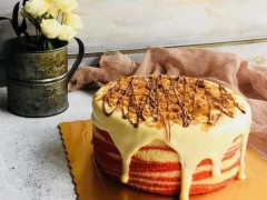 工藝:蛋糕體部分:牛奶,蛋黃用的糖,玉米油放入容器中,攪拌乳化。 待液體表面沒有明顯油花,液體呈粘稠狀,篩入低粉與玉米淀粉、泡多源G 。Z字攪拌均勻。加入蛋黃,攪拌均勻。蛋白加入檸檬汁和所有糖。打至小尖勾取三分之一蛋黃加入到蛋黃糊中,翻拌均勻后,倒回蛋白中,將混合好的蛋糊,分成兩部分。其中一部分加入紅絲絨精華,顏色隨自己喜歡而定。用同樣大小的兩個勺子,取原色蛋糊放置與模具中間位置,再區一勺紅色蛋糊放置與原色蛋糊之上。以此類推。當全部蛋糊放置完成,輕震模具,震出氣泡。烤箱150度。40到45分鐘。具體溫度與時間,根據自己烤箱脾氣酌情增減。出爐倒扣放涼后脫模??ㄊ诉_配方,2個蛋黃,250克牛奶,20克糖,20克玉米淀粉。方法;蛋黃與糖混合均勻后,加入玉米淀粉,牛奶加熱到冒氣,倒入之前混合的蛋黃糊中,邊倒邊攪拌。攪拌均勻后,再倒回到鍋中,加熱到醬汁剛要濃稠,但還可以流動時離火。放涼備用。奶油奶酪軟化后加糖,海鹽,攪拌之順滑。 加入淡奶油,酸奶。攪拌均勻。然后加入放涼的卡仕達醬。混合均勻。放置圓口裱花嘴,裝入裱花袋中 用刀,斜插進蛋糕中間位置。轉圈劃一下蛋糕內部。將奶蓋醬灌入蛋糕體中。 再將其余的奶蓋醬淋于蛋糕表面,讓它自然流下來。 表面撒上黃油脆片,擠上軟化的巧克力。完成。