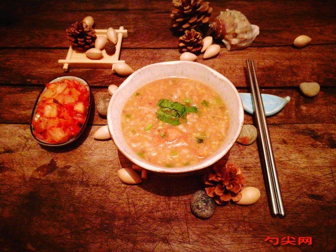 配方:大米:100克,清水:1000克,佳多美D:0.5克,大醬:50克蔥花:適量食用油:5克。