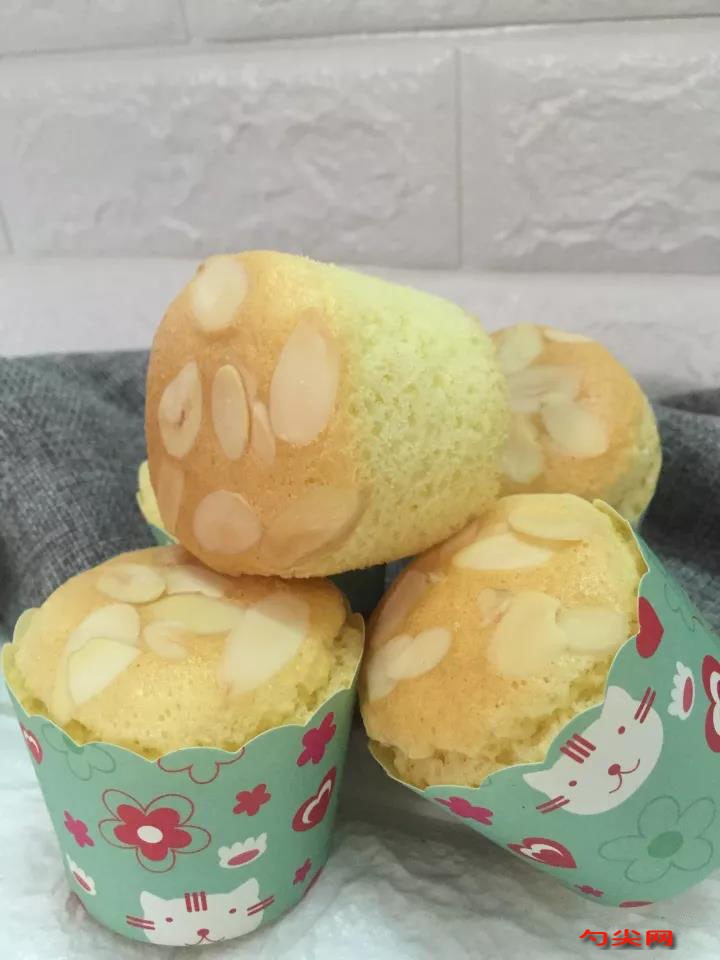 配方:雞蛋:4個(gè),細(xì)砂糖:100克,低筋面粉:100克,杏仁粉:20克,泡多源G:2克,玉米油:50克,牛奶:50克,杏仁片:適量,耐高溫紙杯:若干。