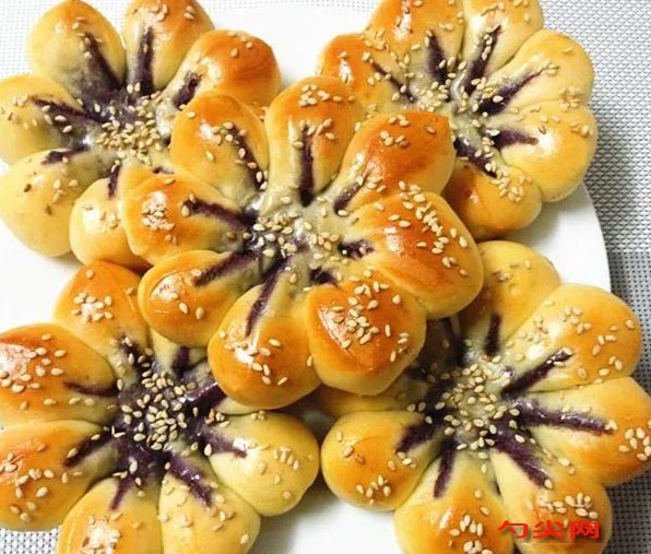 紫薯菊花面包怎么做?紫薯菊花面包商業配方工藝,紫薯菊花面包制作技巧,紫薯菊花面包做法