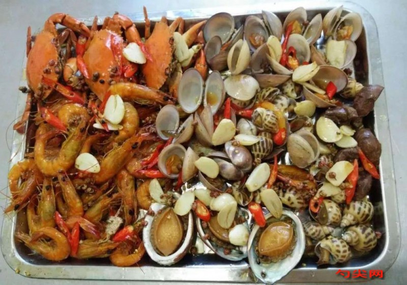 麻辣小海鮮配方:基礎(chǔ)鹵水2500克,水1000克,麻香嘴藤椒醬30克,橋頭火鍋底料150克,姜片50克,啤酒300克,洋蔥塊100克,大蒜子50克,辣鮮露30克,青麻椒20克,老油50克,以上所有料混合一起燒開,加入清洗干凈的海鮮燒至熟透即可。