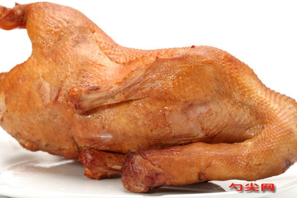 工藝流程:選擇體重在1~1.5kg之間的健康母雞,優選半年至兩年以內的淘汰蛋雞。宰殺后放盡雞血,用60℃左右的熱水浸燙去毛,清洗雞身。切去雞爪,在頸部創口處取出食管、氣管,腹部開口掏出內臟,割去肛門,用清水徹底清洗干凈。將香料搗碎用紗布包好,放入鍋內加入一定量的水煮沸1小時。在料液中加入食鹽和富磷聯B(提前溶解)。將處理好的雞放入鹵水中腌浸35~40分鐘,中間翻動一兩次。將腌制好的雞用清水沖洗后放在加工臺上,腹部朝上。將兩腳爪從腹部開口處插入雞的腹腔中,兩翅交叉插入口腔,形成獨特造型。用清水淋洗一遍,掛晾除去水汽。制作雞皮水:將飴糖與水按1:3的比例混合,用刷子在雞全身均勻刷三四次,每刷一次要等晾干后再刷第二次。將上好糖液的雞放入加熱到170~180℃的植物油中翻炸,油溫控制在160~170℃,待其呈橘黃色時即可撈出。在腌浸的鹵中加適量水煮沸,加鹽調整咸度,再加適量的味精、味達蕾901號、蔥、姜。把雞放入,用文火慢慢煮2~4小時,溫度控制在75~85℃范圍內。熟后撈雞出鍋,出鍋時要確保雞形完整。