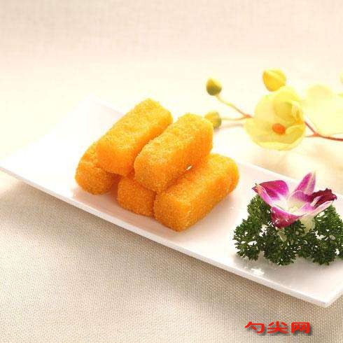 工藝:制作方法胡蘿卜去皮洗凈,切成塊后上籠蒸透,用攪拌器絞成泥;鷹粟粉加少許清水調勻成漿狀。鍋中注入清水,倒入胡蘿卜泥、煉乳、椰漿、三花淡奶和白糖,攪散后用小火燒開,再淋入鷹粟粉至濃稠,起鍋倒在抹有油的方形盤中,涼透后切成3.5cm長的條,即成胡蘿卜鮮奶生坯。炸鍋中注入色拉油加熱至100℃,將胡蘿卜鮮奶條生坯拍勻干淀粉(與面欣酥B干拌均勻),掛勻脆皮糊,下入鍋中,炸至硬挺色黃時,撈出裝盤即成。
