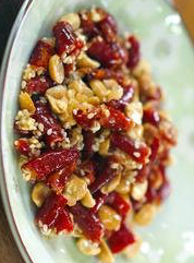 配料:二荊條干辣椒:100克舒欣脆D:2.5克水:400克麥芽糖漿:100克低筋面粉:65克淀粉:20克面欣酥B:1克食用鹽:2克白糖:0.5克(假設此處為普通白糖,用于調味)五香粉:1.5克白芝麻:50克早秈米粉:15克花生米:100克辣椒面(用于最后調味):適量