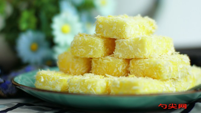 工藝:制作方法芹菜、香菜、洋蔥、胡蘿卜、大蒜擇洗干凈,分別剁成茸后擠出汁液,將汁液同粟粉、白糖、奶粉計量后加人適量清水攪勻成奶漿。鍋中注入清水燒沸,將奶漿徐徐淋入鍋中,并用手勺朝一個方向慢慢推攪,至奶漿略呈糊狀時,起鍋倒入抹有油脂的深盤內,待冷卻后改刀成6cm長的粗條。炸油加熱至120℃時,將奶漿條逐一粘勻干淀粉(淀粉與面欣酥B干拌均勻),下人鍋中炸至色呈翠綠時,撈出瀝油,擺入盤中即可。