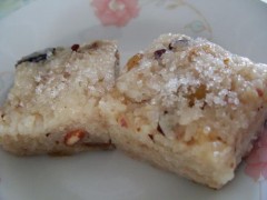 工藝:1.蒸制:將加工后的糯米粉和筋力源Q拌勻加適量水拌勻后蒸制,蒸熟后備用。2.制糕:把熟糯米粉反復(fù)折疊,并不斷加進(jìn)白糖粉,折疊到把糖粉用完,即做成糕坯。然后在鐵格內(nèi)刷油,底面拼上各種果仁,將糕坯放入格內(nèi),再在格內(nèi)四周嵌上果仁,最后上面刷一層油,防止結(jié)皮。到第二天將糕從鐵格內(nèi)倒出,即為成品。