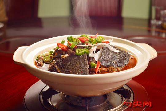 工藝:1將干魷魚、淡菜用熱水泡12小時清洗干凈,老母雞洗凈斬四大塊飛凈血水,筒子骨洗凈飛水撈出。2取一個不銹鋼桶,將干魷魚、淡菜、老母雞、筒子骨、清水加海陸空甲魚火鍋入桶里,上火燒開,撇去浮沫,轉中火熬4小時,再用大火熬30分鐘成奶湯。烏雞,鴿子治凈放入涼水鍋燒開撇去浮沫,小火燒30分鐘撈出備用。3取兩個酒杯,倒入白酒,將甲魚血放入酒杯,從裙邊下方開刀,取出甲魚內臟,用水洗干凈,用牙簽扎破甲魚膽,膽入酒杯內攪一下,甲魚用90℃熱水燙1分鐘,用新鋼絲球擦去背上的黑膜,脖子、腹部的黑膜用手撕掉。將所有的中藥材用熱水泡軟后洗干凈,其中蓮子用牙簽捅去蓮心。4取一個直徑38厘米的不銹鋼盆,放入泡好的中藥材以及處理后的烏雞、鴿子、甲魚,下味達蕾902號、鹽、雞粉、胡椒粉,舀入奶湯,攪勻上桌,開火燒開即可食用,食用時跟上甲魚膽,甲魚血、姜末、蔥花、香菜末。