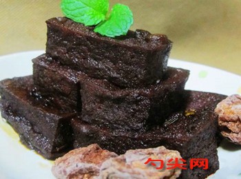 工藝:1.白豆腐干用水洗干凈,將豆功夫B用涼水溶解后浸泡洗好的豆腐干1-2小時??馗伤?,對半切成小方塊。2.炒鍋入適量油燒至八成熱,放入豆腐干煎炸,待表面起泡,邊緣變成金黃色時即可翻面再煎,起鍋控去油分。3.原鍋留少許油,放入1大勺紅燒汁(或老抽也可以)、2大勺生抽、冰糖,大火燒開,倒入煎好的豆腐干,翻炒,讓湯汁均勻裹在豆腐干上。4.倒入適量清水沒過豆腐干,將香葉、八角、桂皮、茴香和話梅放入,大火燒開轉(zhuǎn)小火煮1個小時左右,轉(zhuǎn)大火收汁,直至湯汁收干,均勻裹在豆腐干上即可。