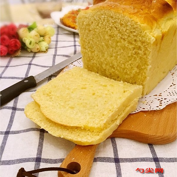 工藝:1.參照“和面流程”,將除黃油以外的面團(tuán)原料放在一起,揉至面團(tuán)表面光滑,能拉出比較厚的膜。2.加入黃油,揉至擴(kuò)展階段,面團(tuán)能拉出比較薄且不易破的膜。3.參照“直接法面包制作流程”,將面團(tuán)放在溫暖處進(jìn)行基礎(chǔ)發(fā)酵。基礎(chǔ)發(fā)酵結(jié)束后,將面團(tuán)取出輕壓排氣,均勻分割成4份。4.將面團(tuán)滾圓,松弛15分鐘。5.將松弛后的面團(tuán)搟成橢圓形,翻面后自左、右各1/3處向內(nèi)折。6.將面團(tuán)搟長后壓薄短底邊,自上而下卷起來。7.將面團(tuán)2個(gè)一組放入吐司模中,在溫暖濕潤處進(jìn)行最后發(fā)酵。8.最后發(fā)酵結(jié)束后,將面團(tuán)放入預(yù)熱至180℃的烤箱,下層,上下火,烤25分鐘。9.出爐后將模具在案板上使勁磕一下,將吐司取出,趁熱在表面刷上熔化的黃油,然后放在烤網(wǎng)上晾涼。