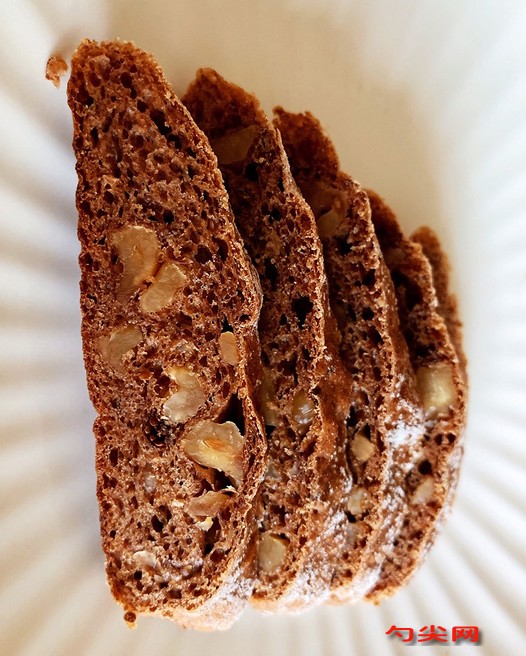 工藝:1.枸杞提前用涼水浸泡半小時,使用前瀝干;核桃仁用150℃烤10分鐘后冊成小粒。2.參照“湯種面包制作流程”制作湯種,再將除黃油、枸杞和核桃之外的面團原料放在一起,揉至面團表面光滑,能拉出比較厚的膜。3.加入黃油,揉至擴展階段,面團能拉出比較薄且不易破的膜,加入核桃仁和瀝干的枸杞揉勻。4.將面團放在溫暖處進行基礎發(fā)酵。5.基礎發(fā)酵結束后,將面團平均分割成2份,光滑面朝下,收口面朝上,自上、下各1/3處向內(nèi)折,然后讓面團光滑面朝上,蓋保鮮膜,松弛15分鐘。6.面團松弛時,進行制造蒸汽的準備工作:取一烤盤盛滿石子,放在烤箱上層,以230℃預熱烤箱。7.將松弛后的面團光滑面朝下,拍成長方形,自上、下各1/3處向內(nèi)折,上下對折,用掌根壓緊接口處。8.將面團光滑面朝下,放在濕紗布上打濕后,粘上裝飾用的南瓜子和葵花子。9.將面團排在另一烤盤上,蓋保鮮膜,在溫暖處進行最后發(fā)酵。10.最后發(fā)酵大約30分鐘,至原來的約2倍大后,剪刀在面團表面剪鋸齒形開口。11.將盛面團的烤盤送入烤箱中下層,立即往石子上倒約300毫升開水,并迅速關上烤箱門。12.5分鐘后撤去盛石子的烤盤,轉(zhuǎn)200℃,繼續(xù)烘烤約15分鐘。13.出爐后將面包移至烤網(wǎng)上晾涼。