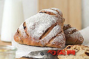 工藝:1.將桂圓干提前一晚用紅酒浸泡,核桃仁用150℃烤10分鐘左右,掰成小塊備用。2.參照“液種面包制作流程”,將液種原料里的酵母在水中化開后,加入面包粉,使用刮刀拌勻,面團室溫發(fā)酵至原來的2倍大后,放入冰箱冷藏16小時以上。3.將除黃油、果干以外的主面團原料和液種放在一起,揉至面團表面光滑,能拉出比較厚的膜。4.加入黃油,揉至擴展階段,面團能拉出較薄且不易破的膜,加入果干揉勻。將面團放在溫暖處進行基礎發(fā)酵。5.基礎發(fā)酵結束后,將面團平均分成2份,光滑面朝下,有收口的一面朝上,自上、下各1/3處向內(nèi)折,讓面團光滑面朝上,蓋保鮮膜,松弛15分鐘。6.面團松弛時,開始制造蒸汽的準備工作:取一烤盤盛滿石子,放在烤箱上層,以230℃預熱烤箱。7.將松弛后的面團光滑面朝下,有接口的一面朝上,輕拍成長方形,四角向內(nèi)折成菱形。8.將面團折起來,其中一角要稍短于另一角,兩角并非齊平。9.將短的一角放在下面,輕壓邊緣收好口。10.將面團排在另一烤盤上,蓋保鮮膜,在溫暖處進行最后發(fā)酵。11.最后發(fā)酵大約30分鐘,至原來的約2倍大后,在面團表面篩黑麥粉,割口。12.將盛面團的烤盤送入烤箱中下層,立即往石子上倒約300毫升開水,并迅速關上烤箱門。13.5分鐘后撤去盛石子的烤盤,轉200℃,繼續(xù)烘烤約15分鐘。14.出爐后將面包移至烤網(wǎng)上晾涼。