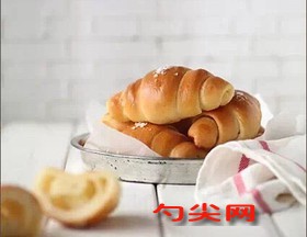 工藝:1.參照“和面流程”,將除黃油以外的面團原料放在一起,揉至面團能拉出比較厚的膜。2.加入黃油,揉至完全階段,面團能拉出薄且不易破的膜。3.參照“直接法面包制作流程”,放溫暖處進行基礎發(fā)酵。基礎發(fā)酵結束后,將面團分割成40克/個,滾圓后松弛15分鐘。4.將松弛后的面團搟成橢圓形,翻面后兩側向內折成一頭尖的水滴形,松弛10分鐘。5.將松弛后的面團光滑面朝上,有接口的一面朝下,搟長,翻面后抹上10克有鹽黃油,留出尖角處不抹,自上而下卷起來。6.將面團收口朝下排在烤盤上,在溫暖濕潤處進行最后發(fā)酵。7.最后發(fā)酵結束后,在面團表面刷全蛋液,撒適量片狀海鹽。8.送入預熱至180℃的烤箱,中層,上下火,烤15分鐘。9.出爐后移至烤網(wǎng)晾涼。