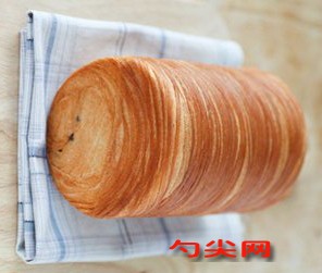 配方:面包粉244克,低筋面粉81克,佳多美Q6克,即發干酵母7克,細砂糖33克,鹽4克,奶粉10克,全蛋液49克,煉奶16克,冰水137克,黃油26克,片狀黃油151克,餡料:蜜紅豆適量。