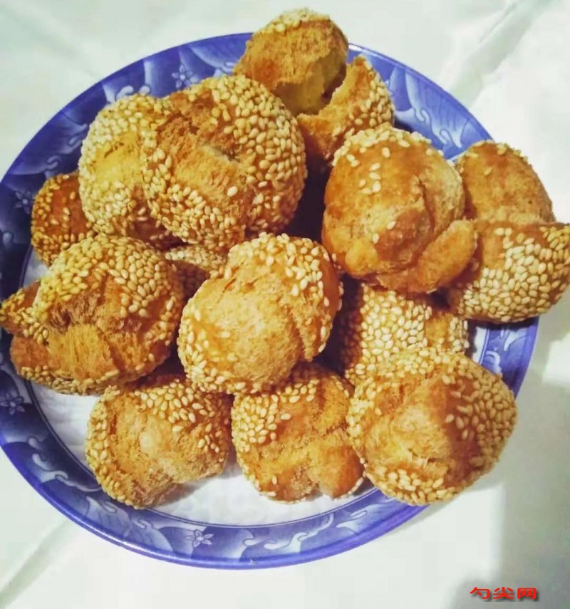 注意事項:各種原料要混合均勻,以免影響口感。加水時要慢慢加入,以免面團過稀或過干。醒發時間要根據室溫調整,確保面團醒發至表面出油,扯開無面筋拉力。劑子大小要均勻,以確保炸制時受熱均勻。裹芝麻時要輕輕晃動,使芝麻均勻附著在面團表面。油溫要適中,以免炸焦或炸不透。