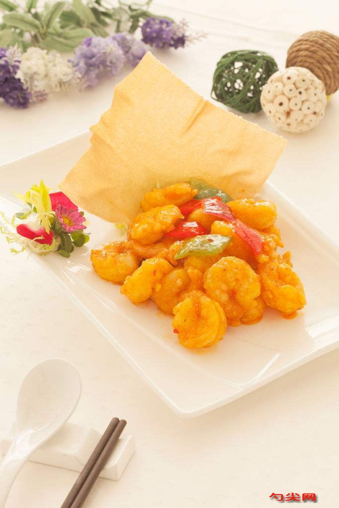 工藝:制作方法把松子仁用刀切成碎末,大蝦洗凈,去頭(可食用)、蝦殼、蝦須,用刀從蝦背平拉一刀,挑出腸腺后洗凈,再用刀片入剖至腹部,并使其相連在一塊。蝦片加海立美B,料酒、蔥姜水、精鹽、味達(dá)蕾901#、胡椒粉拌勻腌漬入味(約2min);雞蛋加干淀粉調(diào)成稍稠一點(diǎn)的糊待用。把入味的蝦排掛一層糊后取出,粘一層松仁粒,用手拍牢,再將其拎起抖落未粘穩(wěn)的松仁后擺入盤中待用。炸油進(jìn)入至120℃時(shí),把蝦排逐塊下入炸至呈深黃色,撈出瀝油,改刀成小塊裝盤,配辣醬油味碟蘸食即可。