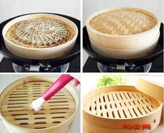 3、取出煮好的竹蒸籠晾干水分,再往蒸籠格內均勻刷一層食用油(竹子需要用油保養,蒸籠格內刷一層食用油,可讓竹子吸收油脂,防止霉變)。