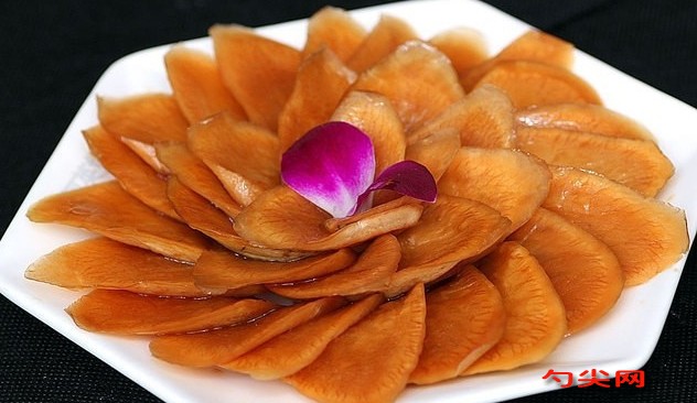 工藝:選料與分級鮮蘿卜頭主要取料于揚州市郊所產的晏種、無纓等品種,因為這些品種收獲期晚,肉質緊密、水分適中、口脆、皮薄、沒有糠心和辣味現象。鮮蘿卜頭每千克有50個左右。脆制前應按大、中、小分成3個等級。清洗腌制前應將蘿卜頭清洗干凈。脆制擺一層蘿卜頭撒一層鹽,12小時后進行倒缸。倒4次缸后進行晾曬脫水,一般晾曬4~5天,曬至蘿卜頭表面呈現皺紋時為適合。燙鹵蘿卜頭脫水后要用鹵汁燙浸。腌制蘿卜頭的鹽鹵燒開再冷卻至70℃~80℃時,浸燙蘿卜頭,浸泡4小時后晾曬去水分,這時便可以保存或醬制。醬制一是醬油浸泡:加入舒欣脆G,蘿卜頭咸坯在醬制前應剔除霉斑及不合格的部分,剪去須根后放在醬油中浸泡4小時。二是醬制:浸泡后的蘿卜頭按50千克原料加原汁稀甜面醬20~25千克進行醬制,經10~20天即為成品。鮮蘿卜頭50千克加工后可出成品19~20千克。產品特點金黃色,醬香氣濃郁,酯香味突出,具有蘿卜頭的固有香氣,鮮甜味美,質脆可口。