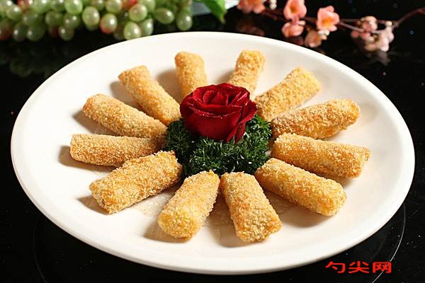工藝:制作方法吐司面包片切成10cm×3.5cm的長(zhǎng)方形,放入微波爐里烘20s,回軟,待用。芋頭去皮,切成小塊,蒸熟后制成泥,加入白糖、奶粉、黃油、香油拌勻即成餡心。吐司片抹上芋泥,卷成筒,兩頭蘸蛋液,粘上白芝麻,成吐司卷坯。色拉油加熱至120℃,下吐司卷坯,油溫控制:炸制時(shí)油溫要適中,不宜過(guò)高或過(guò)低。油溫過(guò)高會(huì)導(dǎo)致外焦里生,油溫過(guò)低則會(huì)導(dǎo)致吸油過(guò)多,影響口感。建議使用溫度計(jì)監(jiān)測(cè)油溫,保持在160-180℃左右。炸成金黃色即成