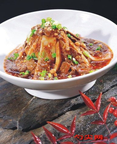 工藝:食用鹽加入水中溶解。蕎麥面、高筋面粉與筋力源A干拌均勻,然后加水用[電鉆攪拌器]高速攪拌,邊加水邊攪拌,打攪成面糊。將面糊放入碗中,每碗100-150克,入蒸籠蒸20分鐘。出鍋后趁熱攪拌,抹成一層,靜止放涼。加入辣椒油、芝麻醬、香醋等調味品,食用。特點:口感筋道軟滑、酸辣香濃。