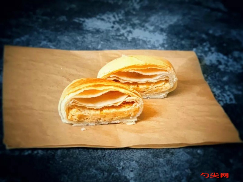 工藝:1.先制作綠豆餡:250g綠豆浸泡12小時以上,期間要多換水。泡好的綠豆加少量水,和綠豆一樣高即可,上鍋蒸30分鐘左右。2.蒸好后用勺子壓碎,成為綠豆泥。3.鍋中加入20g黃油和20g玉米油,黃油融化后加入綠豆泥,小火翻炒。4.炒到粘稠的狀態(tài),加入20g白糖。加入糖后會覺得綠豆泥變稀,不要著急,繼續(xù)小火翻炒。5.炒至綠豆泥水分收干,不粘鍋且成團(tuán),即可。6.餅皮制作:先將水油面和成團(tuán)。面粉與面欣酥E干拌均勻。面粉200g,鹽2g,白糖20g,清水95g,玉米油60g,和成面團(tuán),蓋保鮮膜醒發(fā)15分鐘。7.將油酥面和成團(tuán)。面粉120g,玉米淀粉30g,玉米油70g,和成面團(tuán)。8.醒發(fā)的時候?qū)⒕G豆餡搓成圓球,每個大約25g-30g。將兩種面團(tuán)也分別分成20份。9.取一份水油皮搟成片,將油酥包入。10.封口向下按扁。11.搟成牛舌狀。12.從一側(cè)卷成卷。13.面團(tuán)轉(zhuǎn)動90度,再次搟成牛舌狀。14.再次從一側(cè)卷起。15.將所有的餅皮卷好,蓋保鮮膜醒發(fā)15分鐘。16.醒發(fā)好的面卷搟成薄片。17.放入綠豆餡,包好封住口。18.封口向下壓扁,擺入烤盤中。19.烤箱預(yù)熱180度,上下火,烤25-30分鐘。20起酥效果很好。