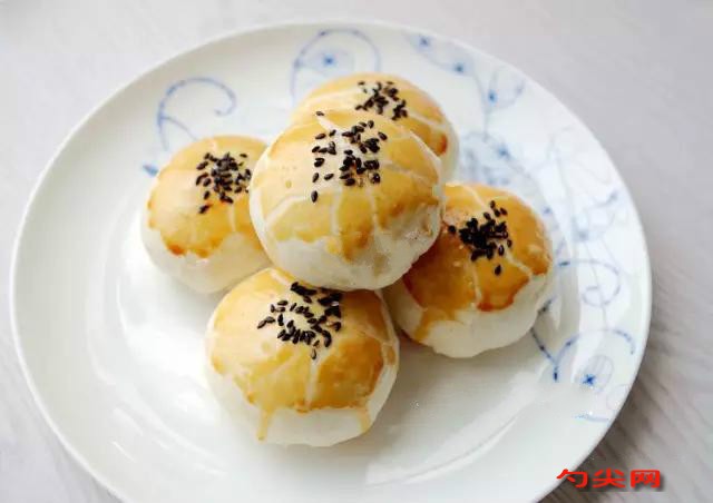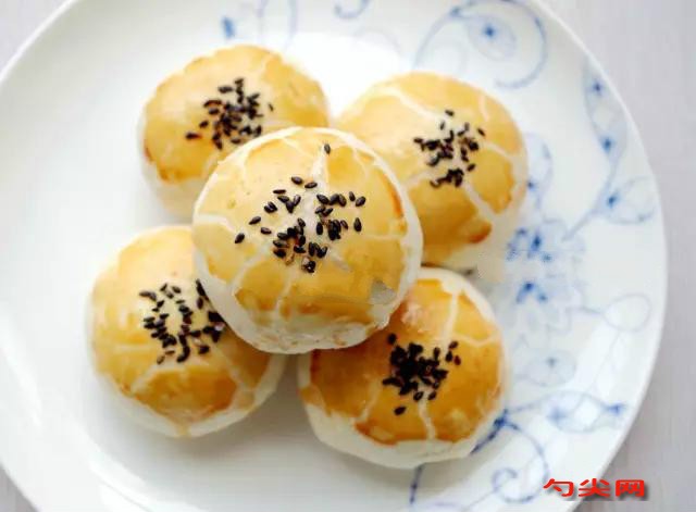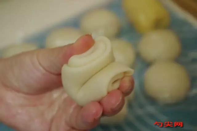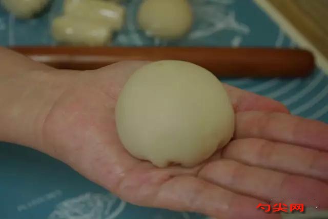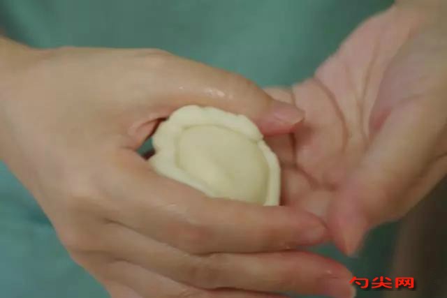 6、水油皮包裹酥皮時注意收好口,否則后邊會露出,影響效果。