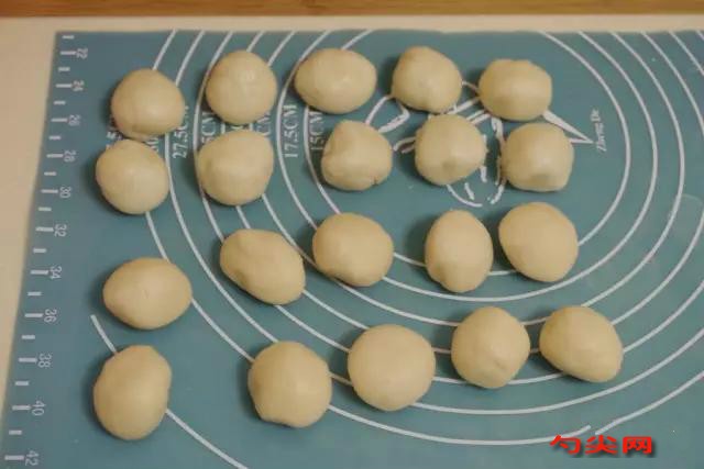 4. 將水油皮和酥皮分別均分為10份,揉圓備用。