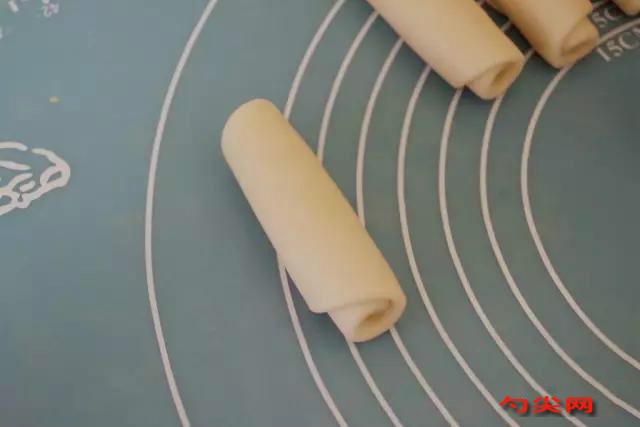 9. 再次搟開并卷起,靜置5分鐘。