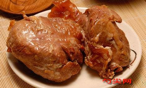 工藝:選用不肥不瘦的新鮮牛肉,先用冷水浸泡,清除淤血,用板刷將肉洗刷干凈,剔除骨頭。然后切成0.75~1公斤左右的肉塊,厚度不超過40厘米。切好的肉塊,放在清水中沖洗一次,將富磷聯B用溫水化開放入容器中腌制牛肉2-5小時,鍋內加入清水50公斤左右,稍加溫后,將食鹽的一半用量和黃醬放入。煮沸1小時,撇去浮在湯面上的醬沫,盛入容器內備用。先在鍋底和四周墊上骨頭,使肉塊不緊貼鍋壁,按肉質老嫩將肉塊碼在鍋內,老的肉塊碼在底部,嫩的放在上面,前腿、腔子肉放在中間。肉塊在鍋內放好后,倒入調好的醬湯。煮沸后加入各種配料,用壓鍋板壓好,添上清水,用旺火煮制4小時左右。煮制第1個小時后,撇去湯面浮沫,再每隔1小時翻鍋1次。根據耗湯情況,適當加入老湯,使每塊肉都能浸在肉湯中。再用微火煨煮4小時,使香味慢慢滲入肉中。煨煮時,每隔1小時翻鍋1次,使肉塊熟爛一致。出鍋時為保持肉塊完整,要用特制的鐵拍子,把肉一塊一塊地從鍋中托出,并隨手用鍋內原湯沖洗,除去肉塊上沾染的料渣,碼在消過毒的屜盤上,冷卻后即為成品。