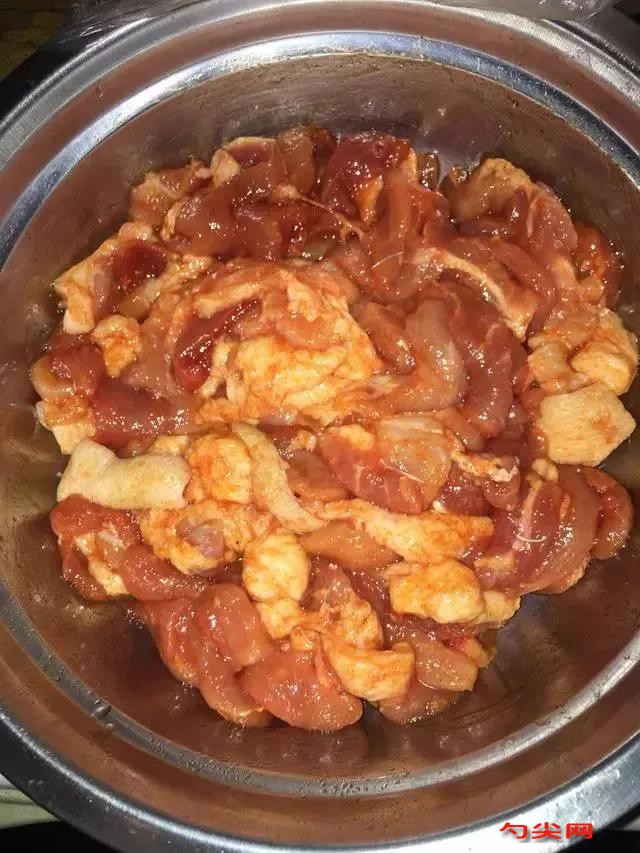 02.豬肉腌配方:豬肉(200克),老抽1/2大勺,泡多源E4克、味達蕾903號1克、粟粉1/2大勺,水1-2大勺。