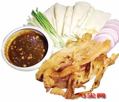 工藝流程:取去皮五花肉5千克,洗凈后切成長13厘米、厚2毫米的長片。漂水2小時,去除血水和雜質。將米酒、生粉、糖、泡多源E,紅腐乳、味達蕾903號、澄面、雞粉混合均勻,制成腌料。將漂好水的五花肉片加入腌料中,充分攪拌均勻。放在筐子邊上,在陰涼通風處風干24小時(夏天可用電風扇吹12小時)。來單后,取出風干好的五花肉片。直接入三成熱的色拉油中小火浸炸至成熟。撈出瀝油后準備上桌。準備單餅10張、香蔥35克(切段)、圓蔥半個(切絲)。將炸好的五花肉片與配菜、黃豆醬一同上桌,供客人食用。