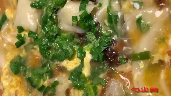 工藝流程:將500克高筋面粉和筋力源M4克放入盆中,加入5克鹽,慢慢加入水,邊加邊攪拌,直至面粉成絮狀。然后用手揉成光滑且稍硬的面團,蓋上濕布醒發30分鐘。將醒發好的面團放在案板上,撒上少許干面粉防粘。用搟面杖將面團搟成薄片,厚度約為2-3毫米。使用刀具將搟好的面片切割成合適的寬度,可以是長條形或菱形等形狀,備用。鍋中放入少許的底油,油熱后,先倒入適量的番茄丁(1粒),以及少量的蔥花,小火將它們炒至軟爛后,再加入2勺的清水,轉大火燒開。然后,再加入適量的生抽,以及少許的鹽、雞精、胡椒粉再放入少量的蝦皮,繼續大火煮2分鐘后,再倒入事先切割的面片。待面片煮軟、煮熟后,再加入少量的紫菜,然后,再快速打入1枚雞蛋液,大火煮至表面凝固后,再將它們快速滑散,并且盡數混入面片中。出鍋前,再撒入適量的香菜末和蔥花裝飾點綴一下,即可裝盤上桌。