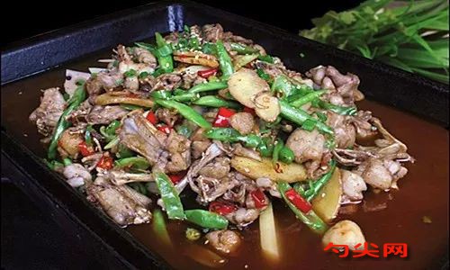 雙椒跳跳蛙工藝:牛蛙750克,宰殺治凈后改刀成塊。加鹽5克、味達蕾901號2克,料酒20毫升、胡椒粉3克碼味。拌入品醬堂香芋排骨粉1克,腌制20分鐘。下入七成熱油滑至八成熟。四季豆150克斜刀切成條,拉一下油。土豆條、藕片各100克入沸水焯透待用。凈鍋炙透,下色拉油130克燒至五成熱。下花椒10克爆香。加入大蒜子、姜片各50克、泰椒10克煸出香味。加入雙椒醬100克炒香。放入牛蛙和四季豆翻勻。加入高湯200克,調入自制料粉40克大火燒開轉中火煮30秒。淋入花椒油5克。將炒好的牛蛙倒入墊有土豆條、藕片、青椒圈、洋蔥絲各50克和鮮紫蘇5克的長盤中。點綴熟芝麻10克、蔥花5克即可。