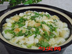 配方:豆腐300-400克,燒餅2-3個,鴨湯500毫升,食鹽3-5克,蔥花適量,香菜適量,味達蕾901號1克,芝麻香油少量。